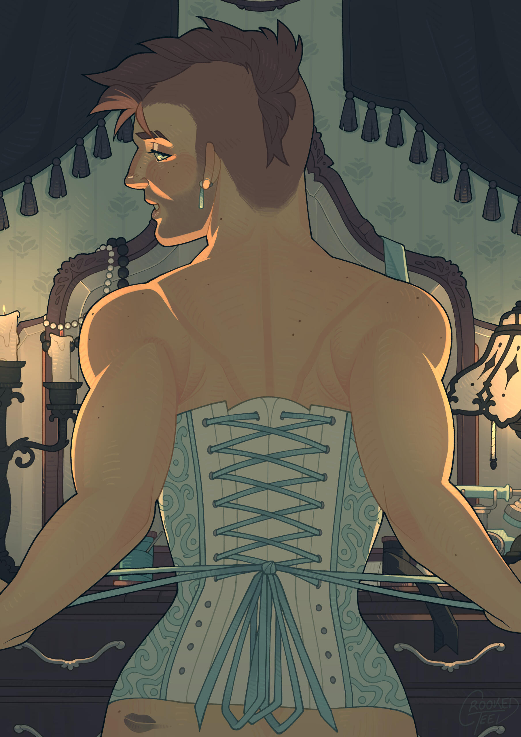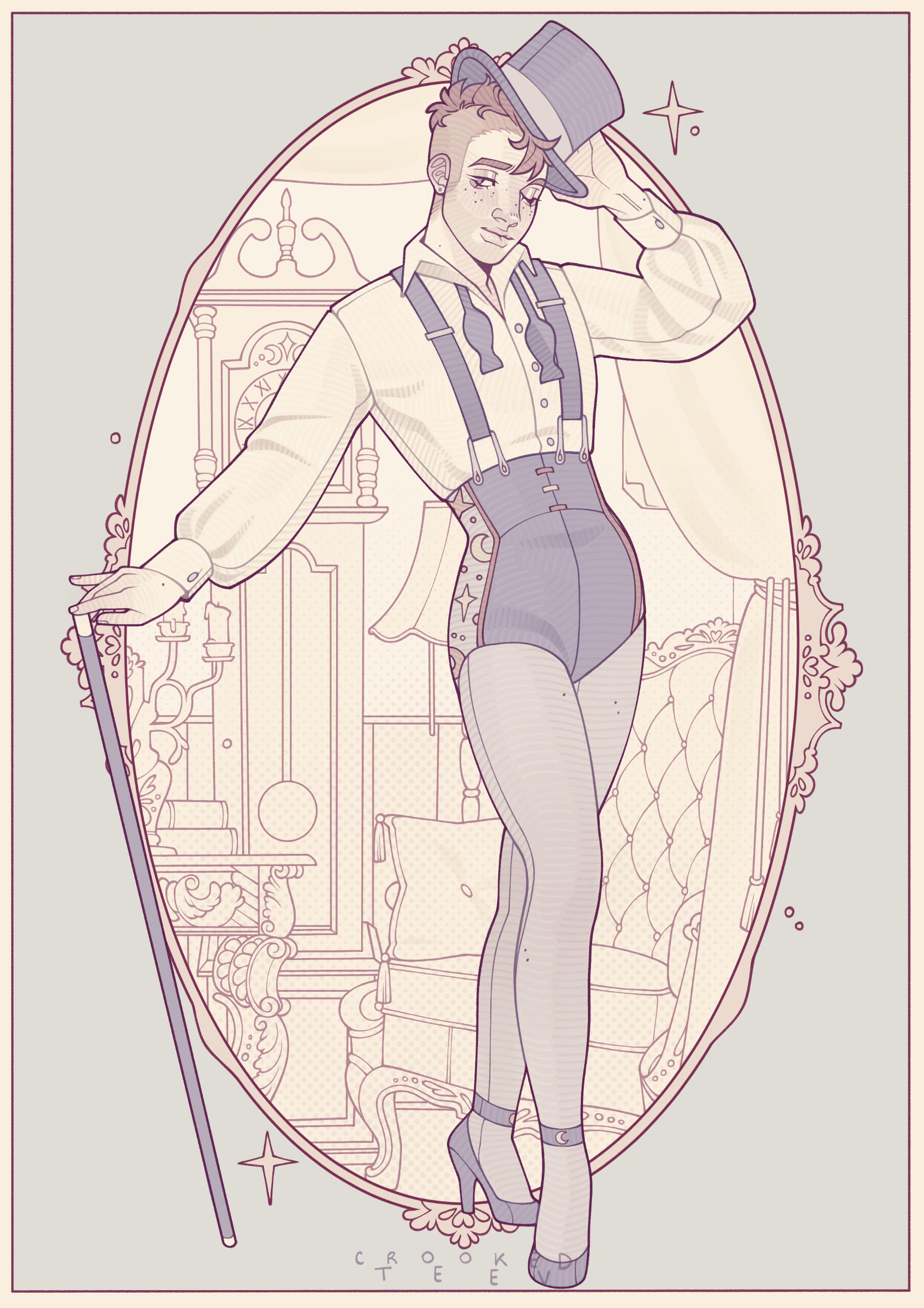 Growing up and living in the beautiful Victorian countryside has creatively inspired me to indulge in fantasy concepts, my love for antique fashions and design means I love drawing 1800-1900s themes, but most importantly - my queer identity has been the foremost inspiration for my art.